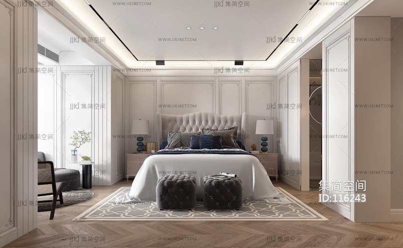 美式简欧式卧室 3d模型下载 [模型ID:116243]
