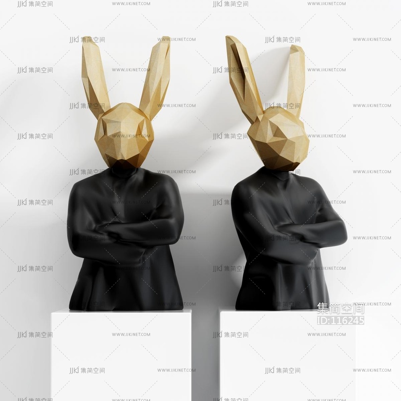 现代兔子抽象人物兔子雕塑摆件 3d模型下载 [模型ID:116245]