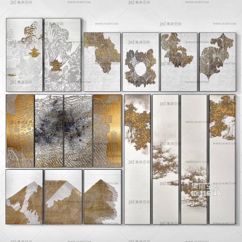 新中式轻奢抽象山水装饰画_挂画 3d模型下载 [模型ID:116349]