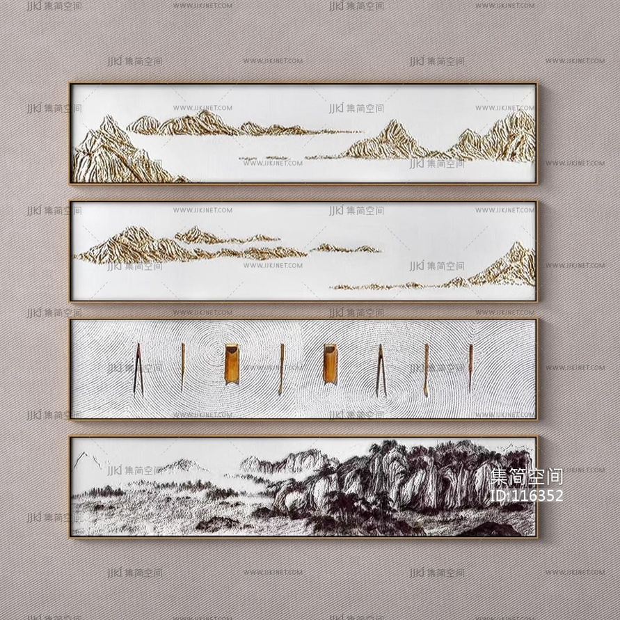 新中式横条山水装饰画_挂画 3d模型下载 [模型ID:116352]
