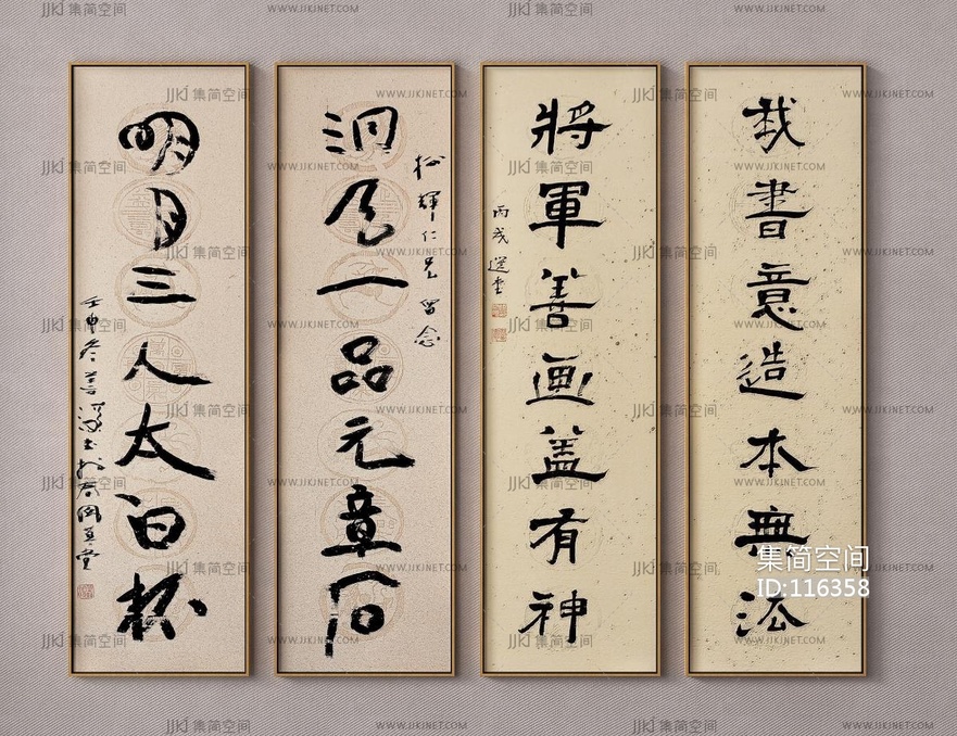 新中式书法字画_挂画 3d模型下载 [模型ID:116358]