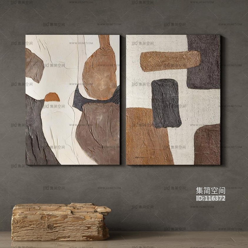侘寂风装饰画_挂画_老旧木头 3d模型下载 [模型ID:116372]