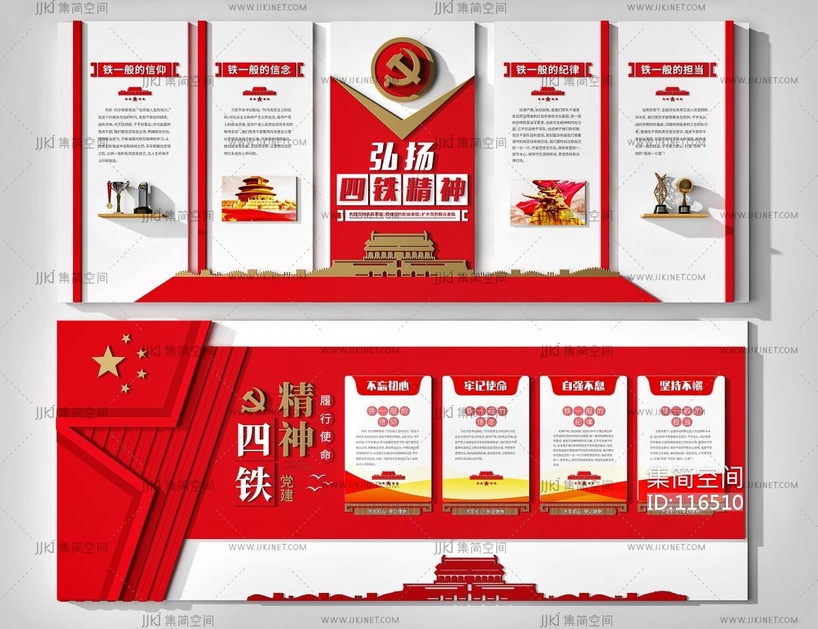 现代党建文化墙_宣传栏_文化栏 五星红旗,党徽(1) 3d模型下载 [模型ID:116510]