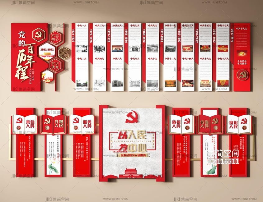 现代党建文化墙_宣传栏_文化栏 展板(1) 3d模型下载 [模型ID:116511]