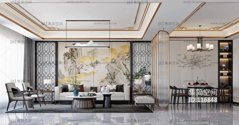 新中式风格客餐厅 3d模型下载 [模型ID:116848]