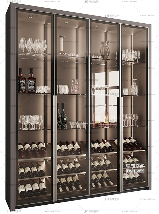 现代酒柜圆柱形酒柜酒瓶子红酒高脚杯3D模型3d模型下载