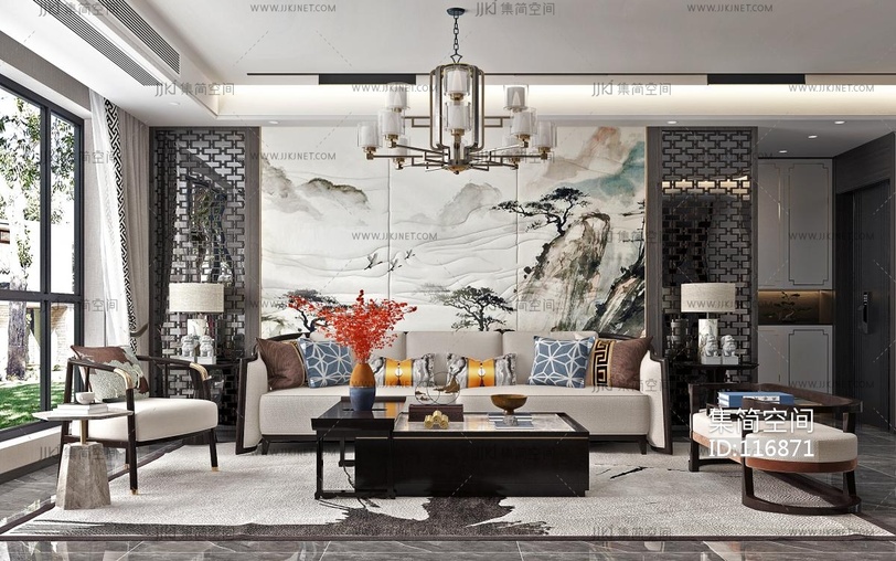 新中式客厅 3d模型下载 [模型ID:116871]