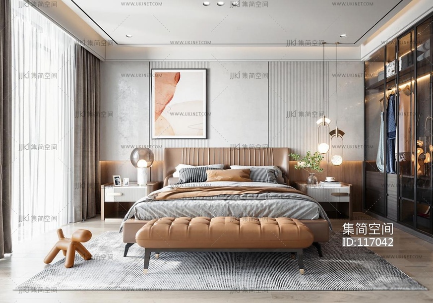 现代轻奢卧室 3d模型下载 [模型ID:117042]