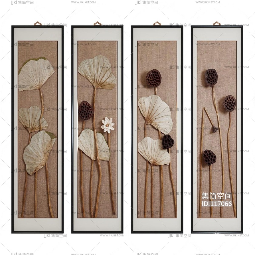 新中式莲蓬荷叶装饰画 3d模型下载 [模型ID:117066]