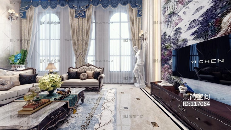 欧式别墅客厅 3d模型下载 [模型ID:117084]