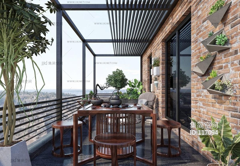 现代休闲景观阳台 3d模型下载 [模型ID:117094]