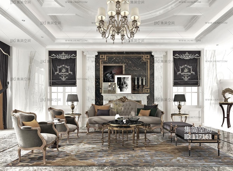 欧式古典客厅 3d模型下载 [模型ID:117161]