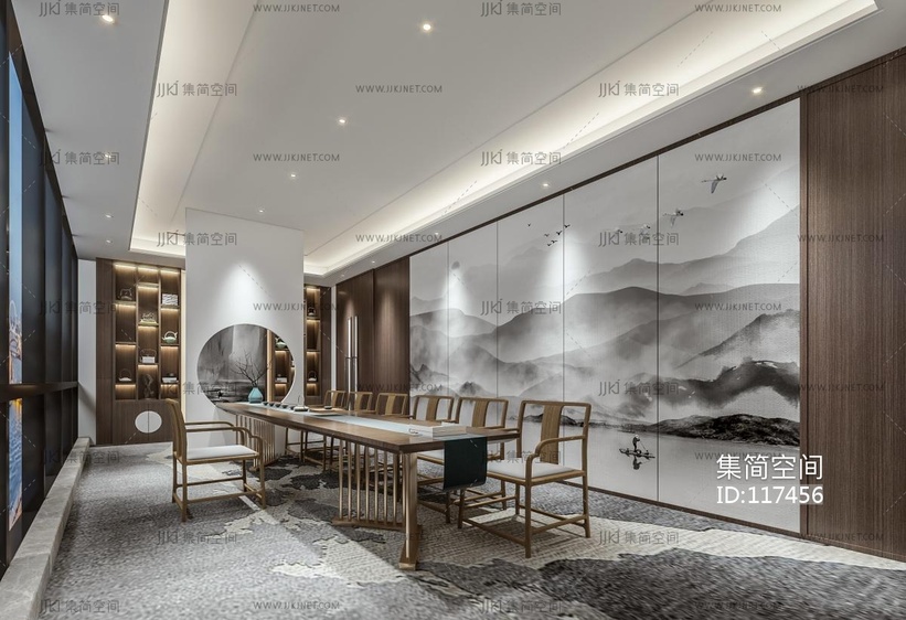新中式办公室书房 3d模型下载 [模型ID:117456]