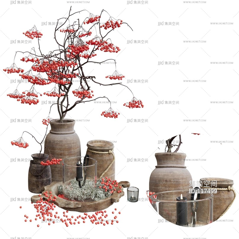 青瓷花盆中的树枝花束,植物插画3D模型cr3d模型下载