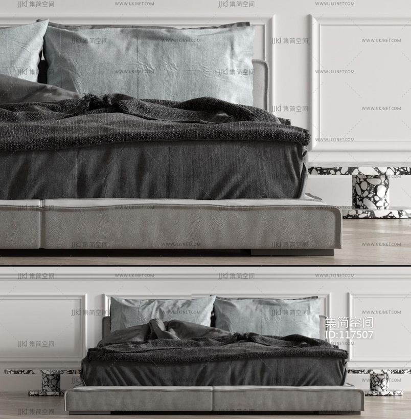 现代布艺双人床 3d模型下载 [模型ID:117507]
