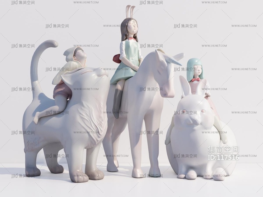 05-现代雕塑摆件_现代抽象兔子公仔_公仔_玩偶_动物雕塑_艺术雕塑3D模型3d模型下载