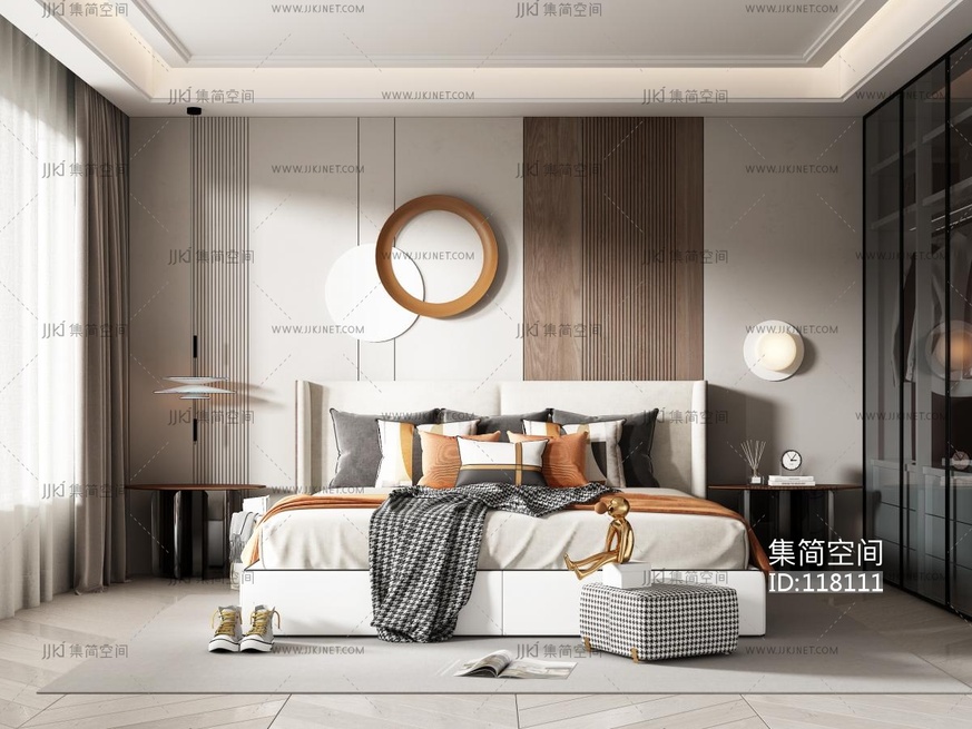 现代轻奢简欧式卧室 3d模型下载 [模型ID:118111]