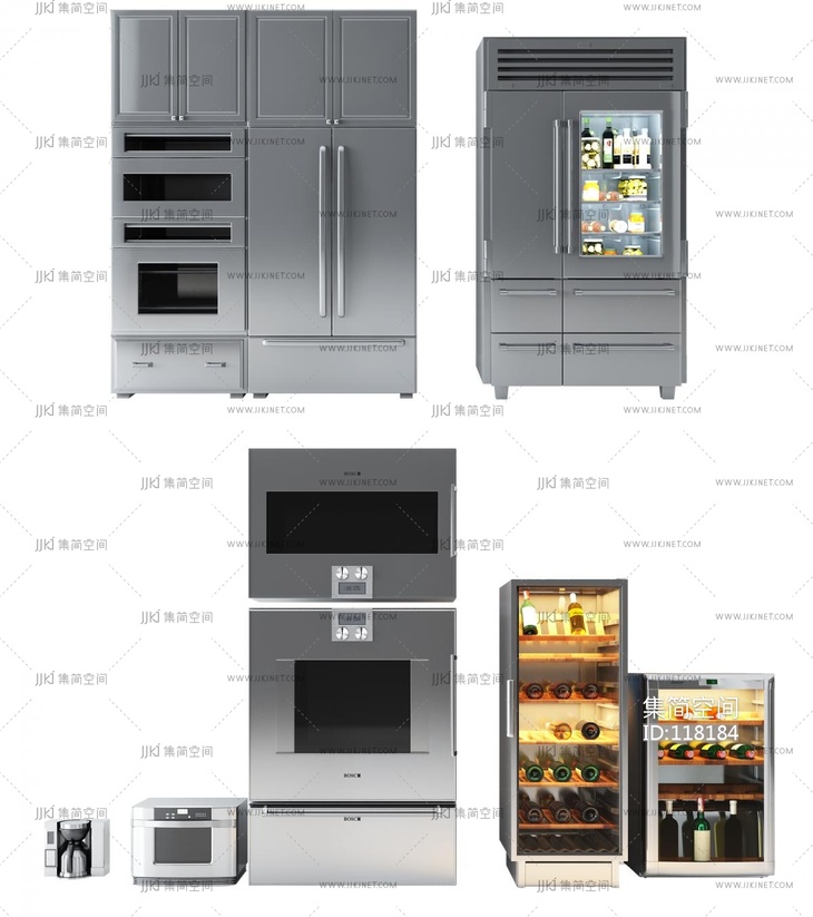 现代冰箱_酒柜_厨房电器 3d模型下载 [模型ID:118184]