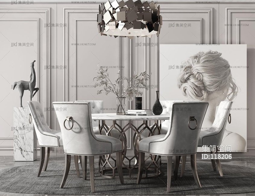 简欧式餐桌椅组合 3d模型下载 [模型ID:118206]