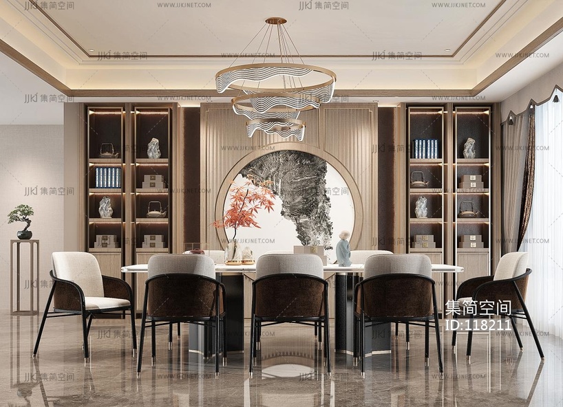 新中式家居餐厅 3d模型下载 [模型ID:118211]