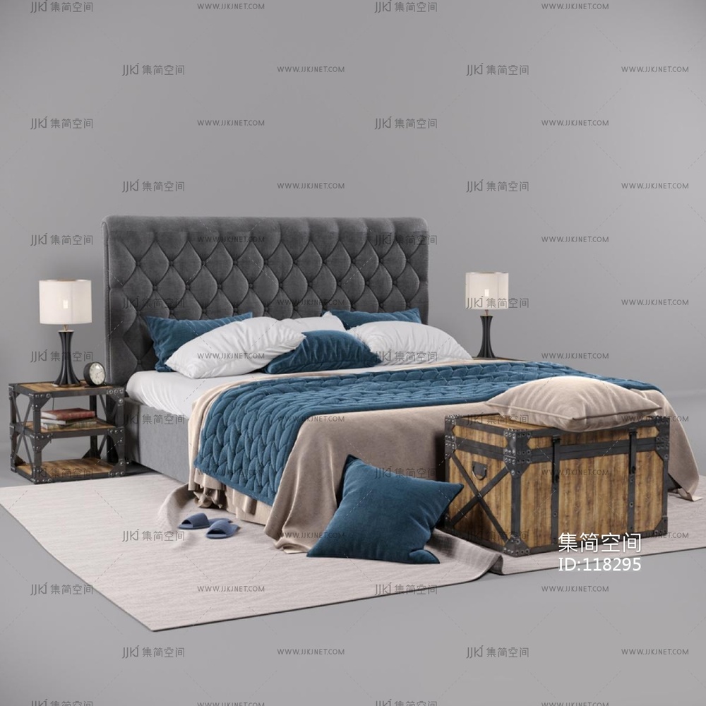 13-现代轻奢双人床_布艺_皮质_轻奢双人床集合3D模型3d模型下载