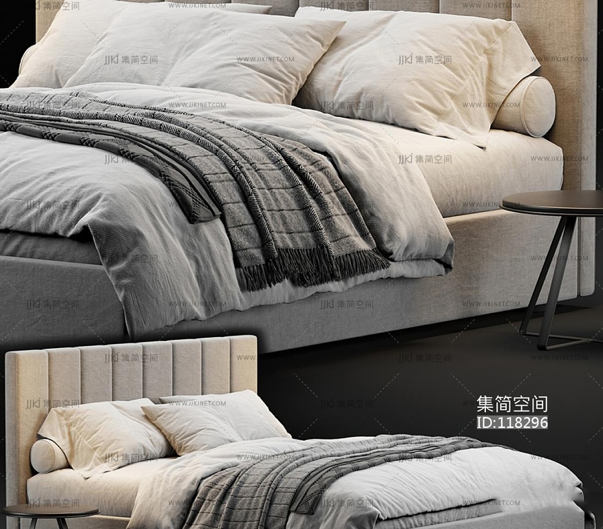 13-现代轻奢双人床_布艺_皮质_轻奢双人床集合3D模型3d模型下载