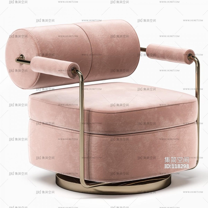 01-现代法式单人沙发_休闲椅_单椅_扶手椅圆形边几书本书籍玻璃水杯3D模型3d模型下载