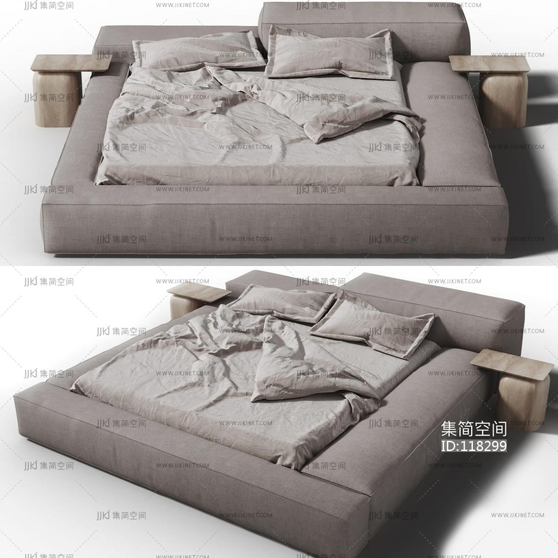 现代布艺双人床 3d模型下载 [模型ID:118299]