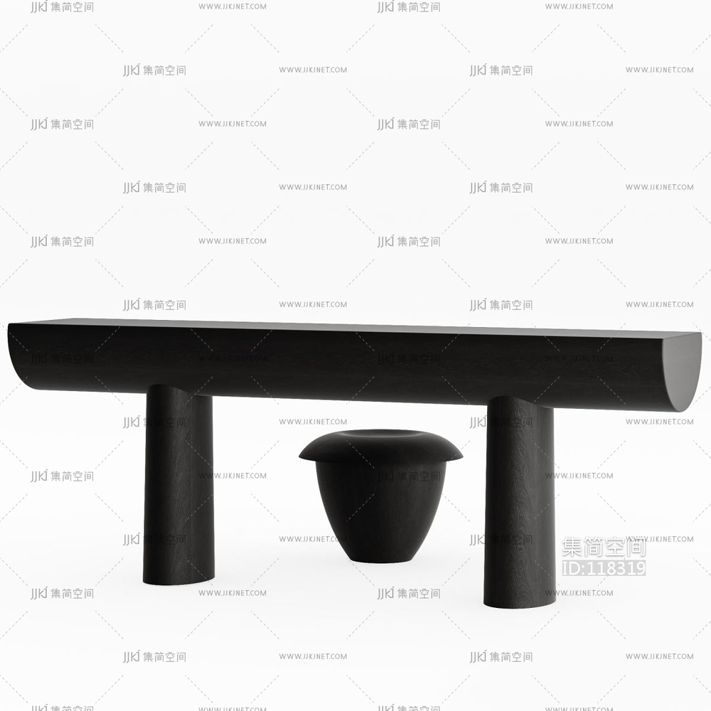 北欧长凳,公共座椅长条凳,3D模型3d模型下载