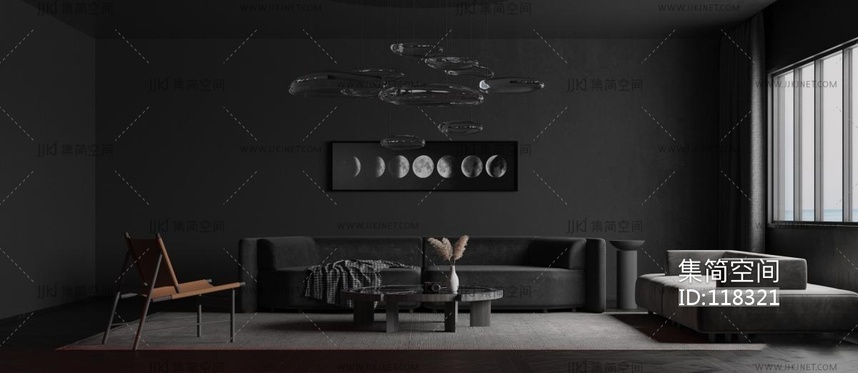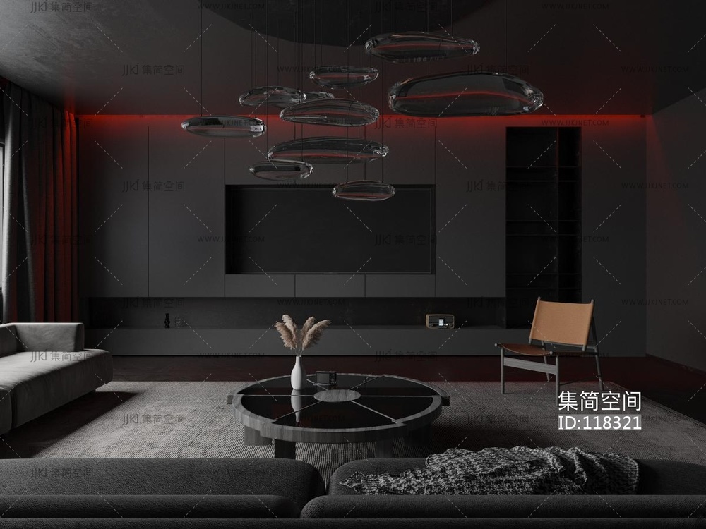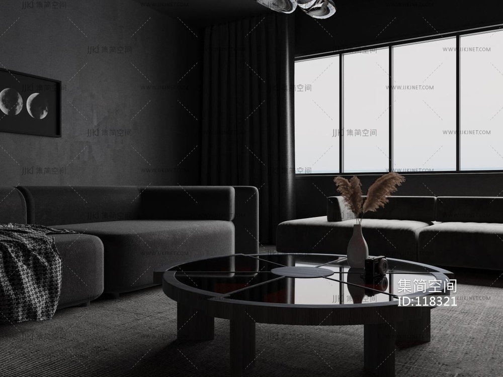 暗黑风客厅 3d模型下载 [模型ID:118321]