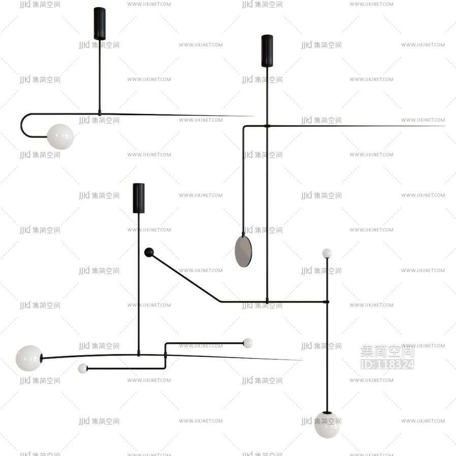 现代极简铁艺吊灯 3d模型下载 [模型ID:118324]