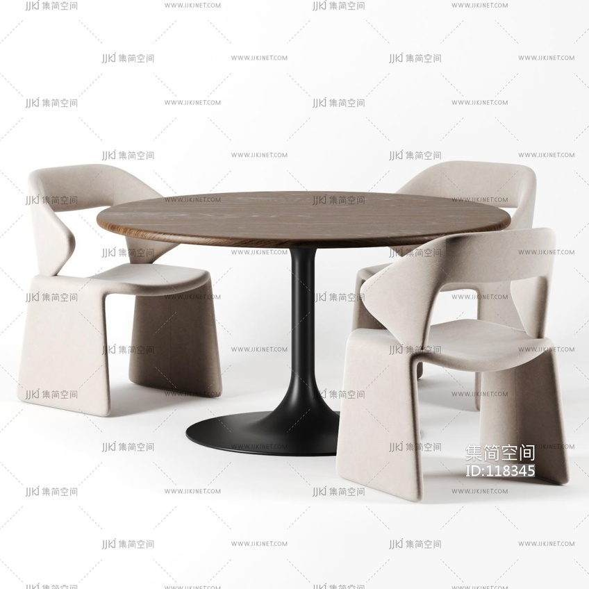 现代圆桌餐桌椅组合3d模型下载
