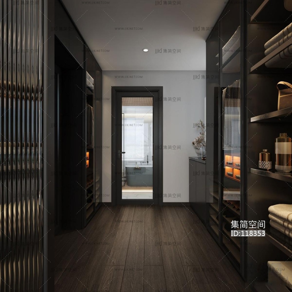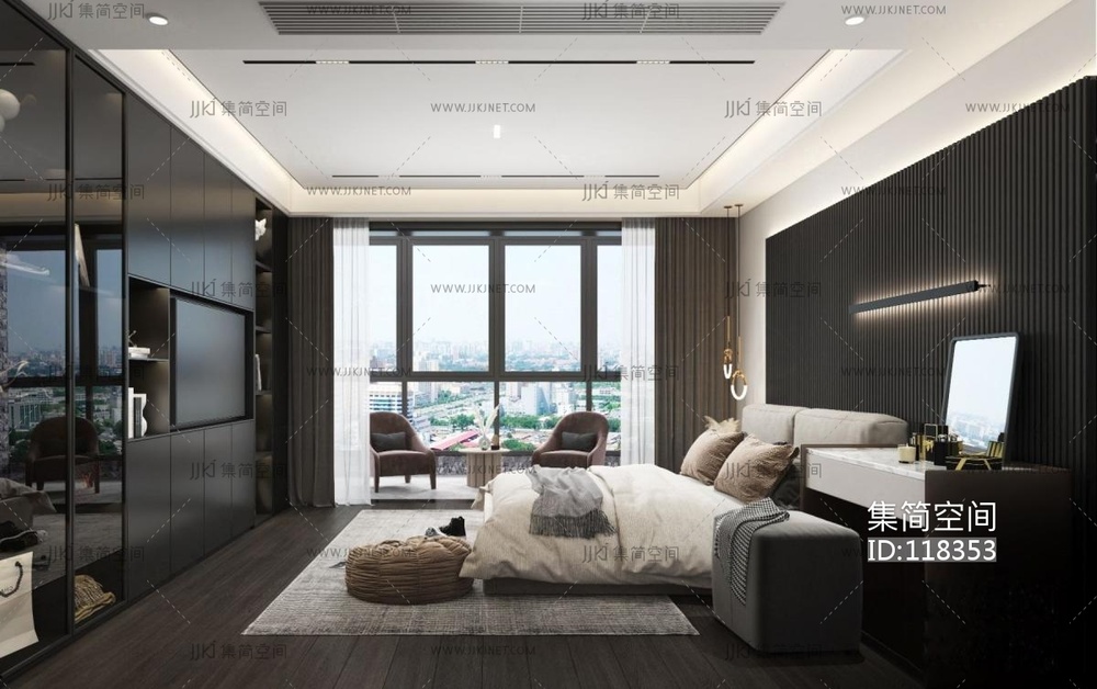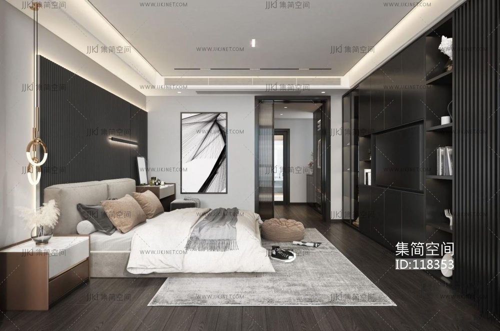 现代黑白灰卧室主人房 3d模型下载 [模型ID:118353]