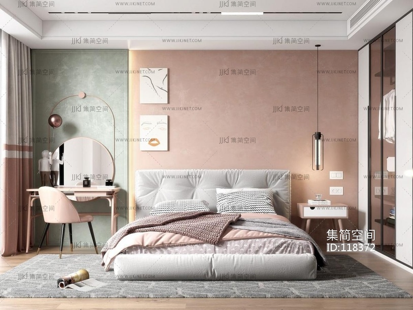 07-现代儿童房,儿童床学习桌-3d模型下载