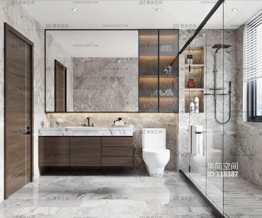 法式奶油风卫生间_洗手盆_马桶抽纸盒花瓶3D模型3d模型下载