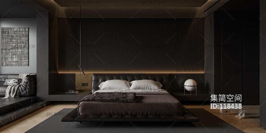 现代家居卧室 3d模型下载 [模型ID:118438]