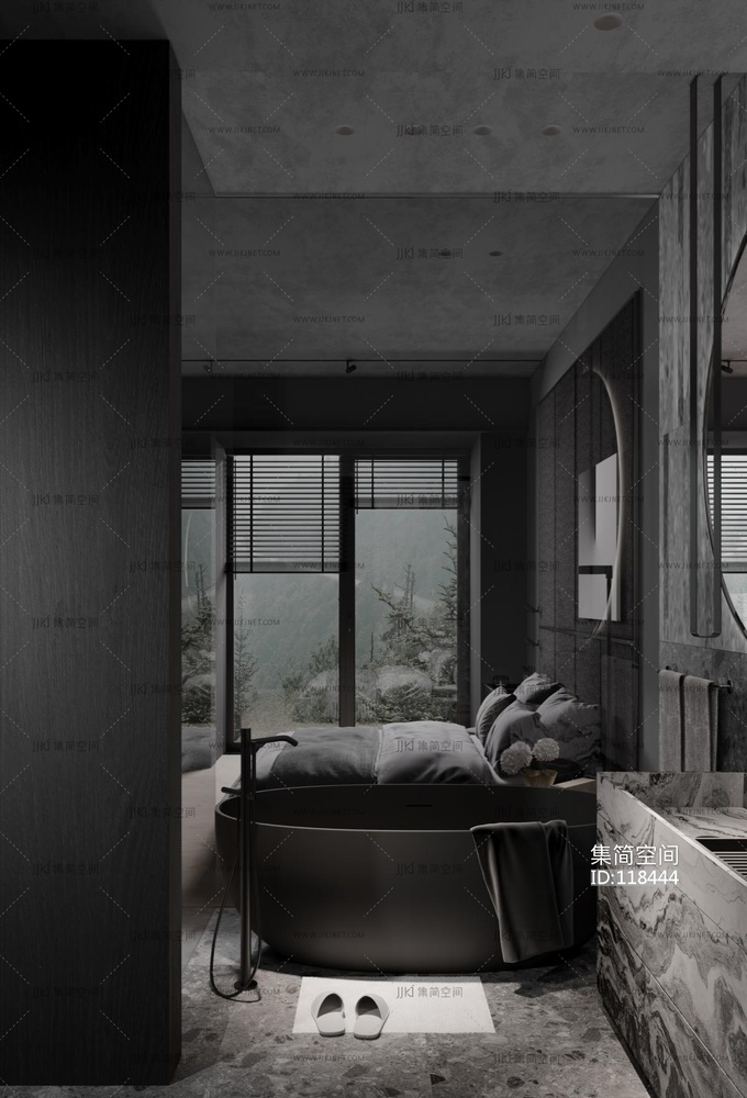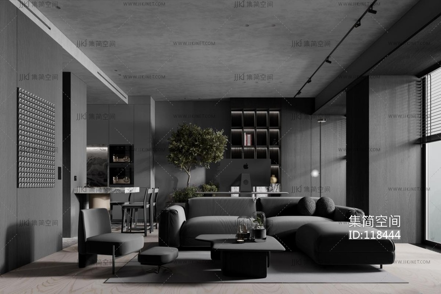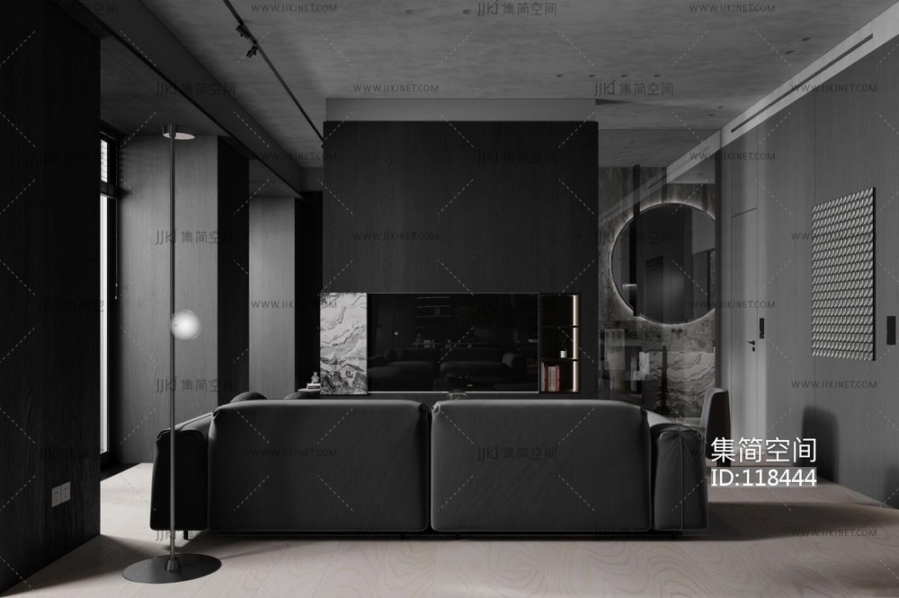 黑色单身公寓整装 3d模型下载 [模型ID:118444]