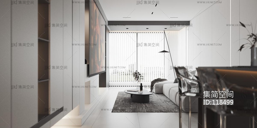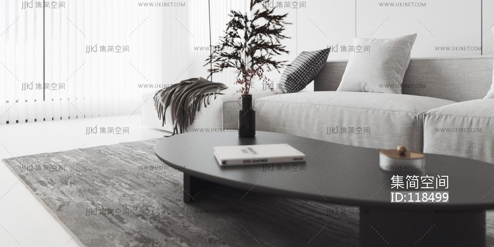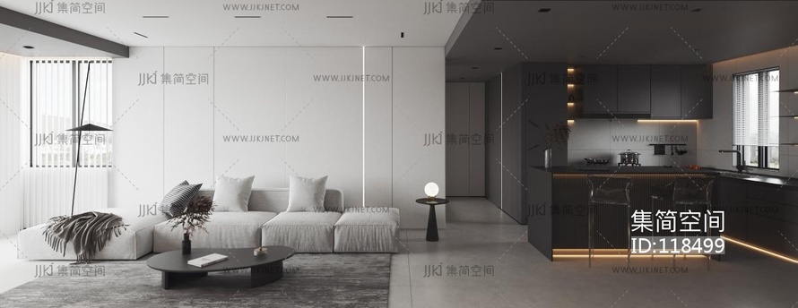 黑白灰极简客厅 3d模型下载 [模型ID:118499]