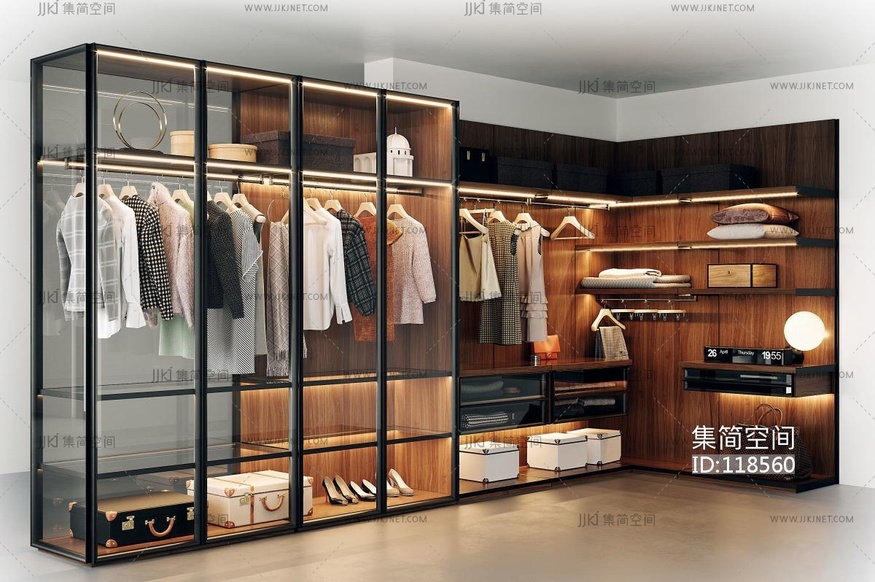 现代灯光转角衣柜 3d模型下载 [模型ID:118560]