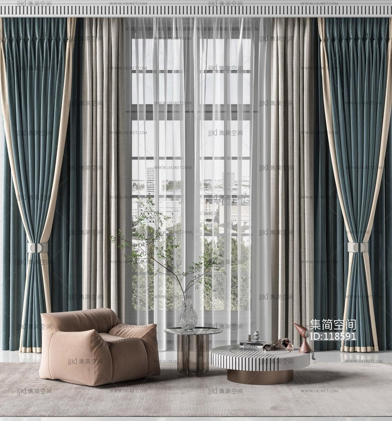 现代通用窗帘_布艺窗帘_纱帘3D模型3d模型下载