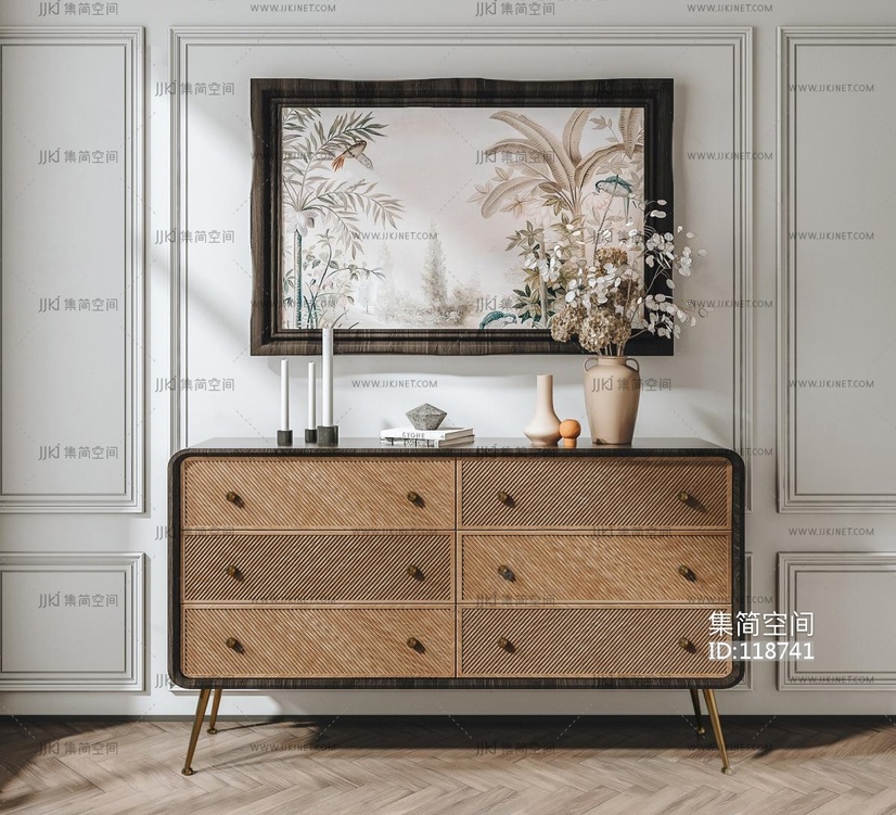 美式玄关柜摆台装饰画3D模型下载3d模型下载