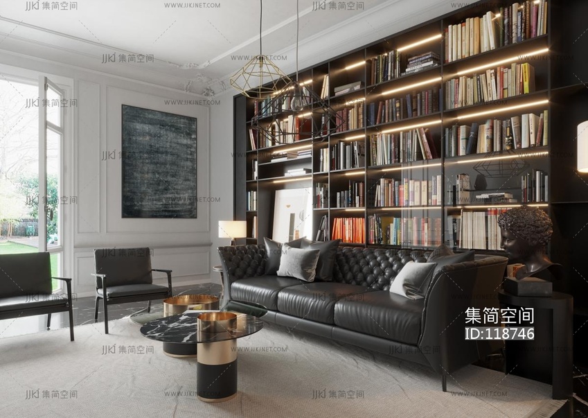中古风客厅,美式客厅,圆形茶几,装饰画,移动电视,3d模型下载