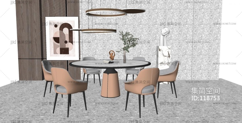 现代简约餐桌 餐厅SU模型su草图模型下载