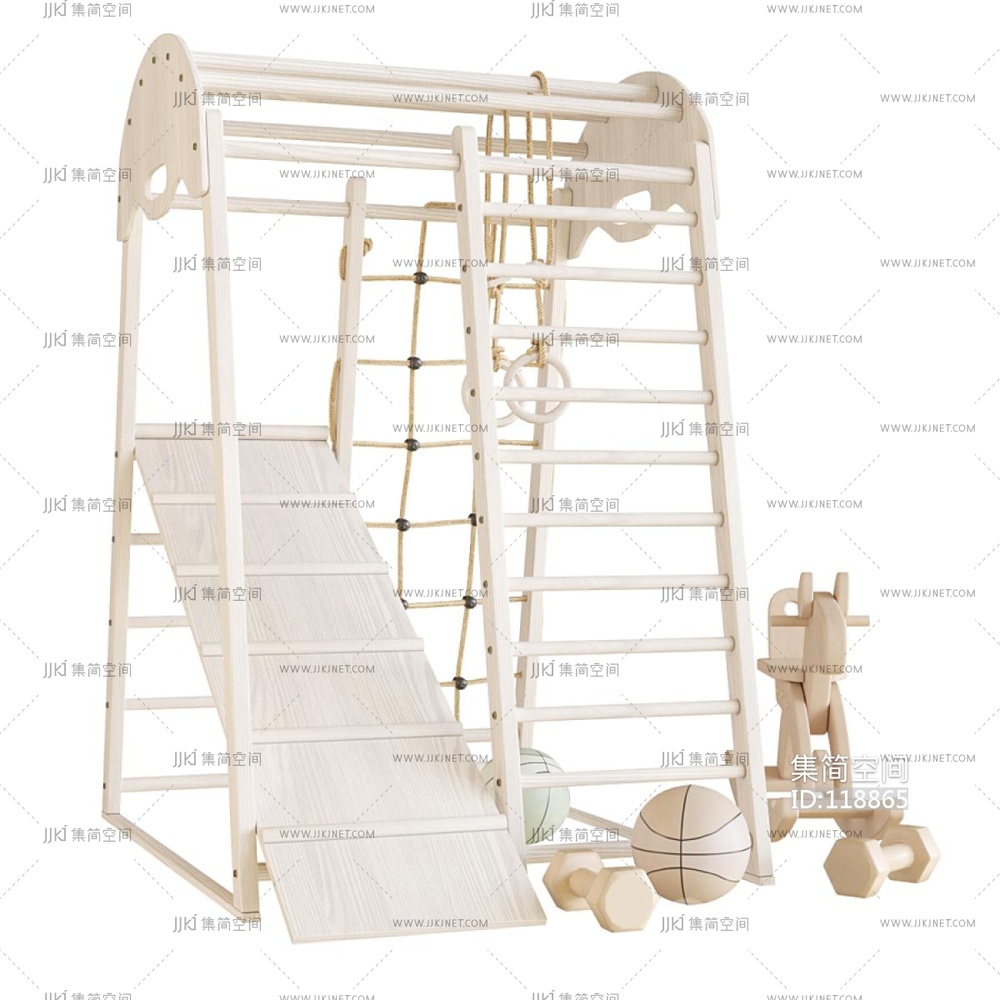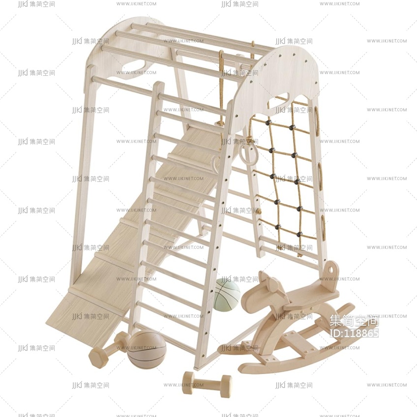 现代实木儿童运动娱乐器材,摇摇椅,木马篮球攀爬器材 3d模型下载 [模型ID:118865]
