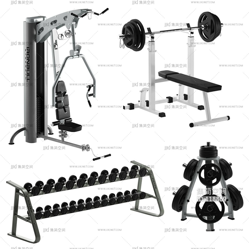 现代哑铃健身器材,力量器械举重机 3d模型下载 [模型ID:118869]