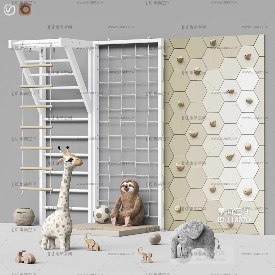 北欧儿童攀岩攀爬设备,树懒长颈鹿,小象大象玩具足球软梯 3d模型下载 [模型ID:118870]