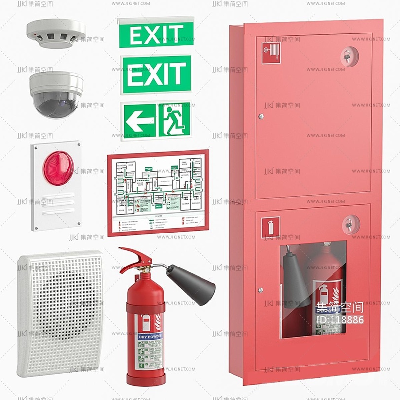 现代消防栓报警器灭火器 3d模型下载 [模型ID:118886]