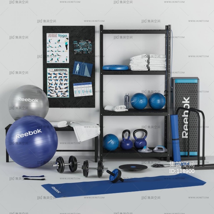现代瑜伽毯,健身垫,健身球,瑜伽球,哑铃,毛巾健身器材,器材架 3d模型下载 [模型ID:118900]