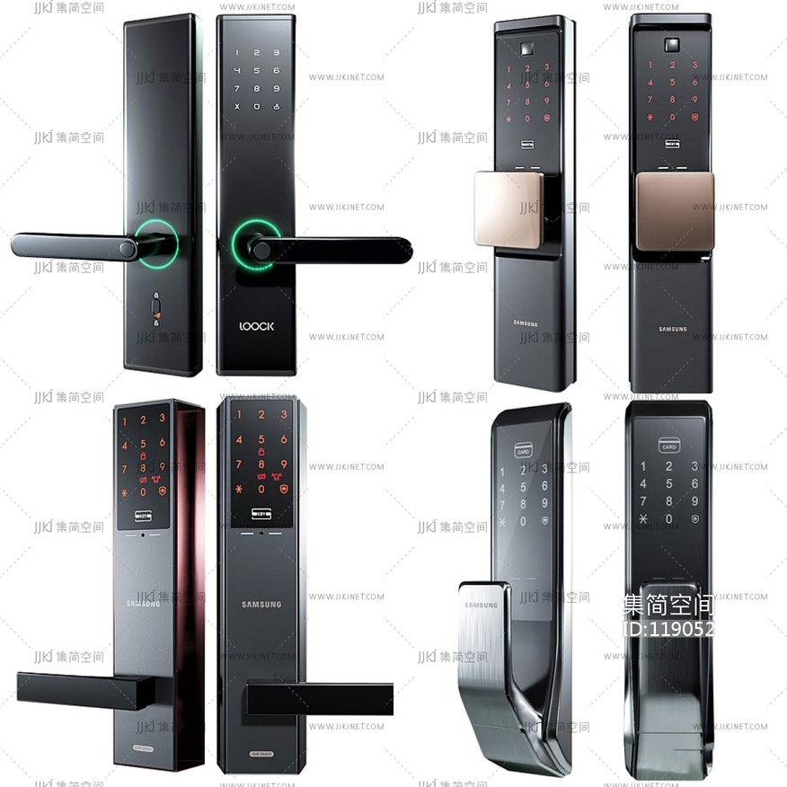现代拉手_现代电子锁_防盗锁_指纹锁_智能锁_密码锁3D模型3d模型下载