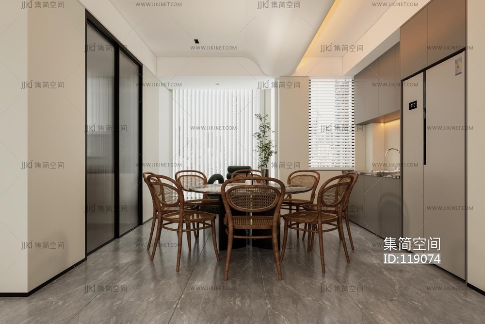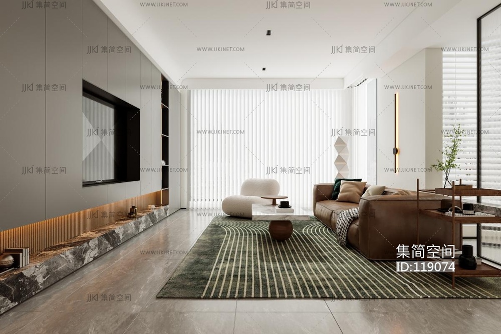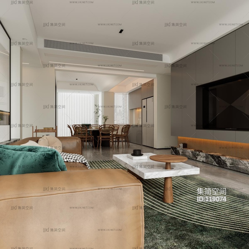 现代客餐厅,沙发茶几地毯圆形餐桌椅 3d模型下载 [模型ID:119074]